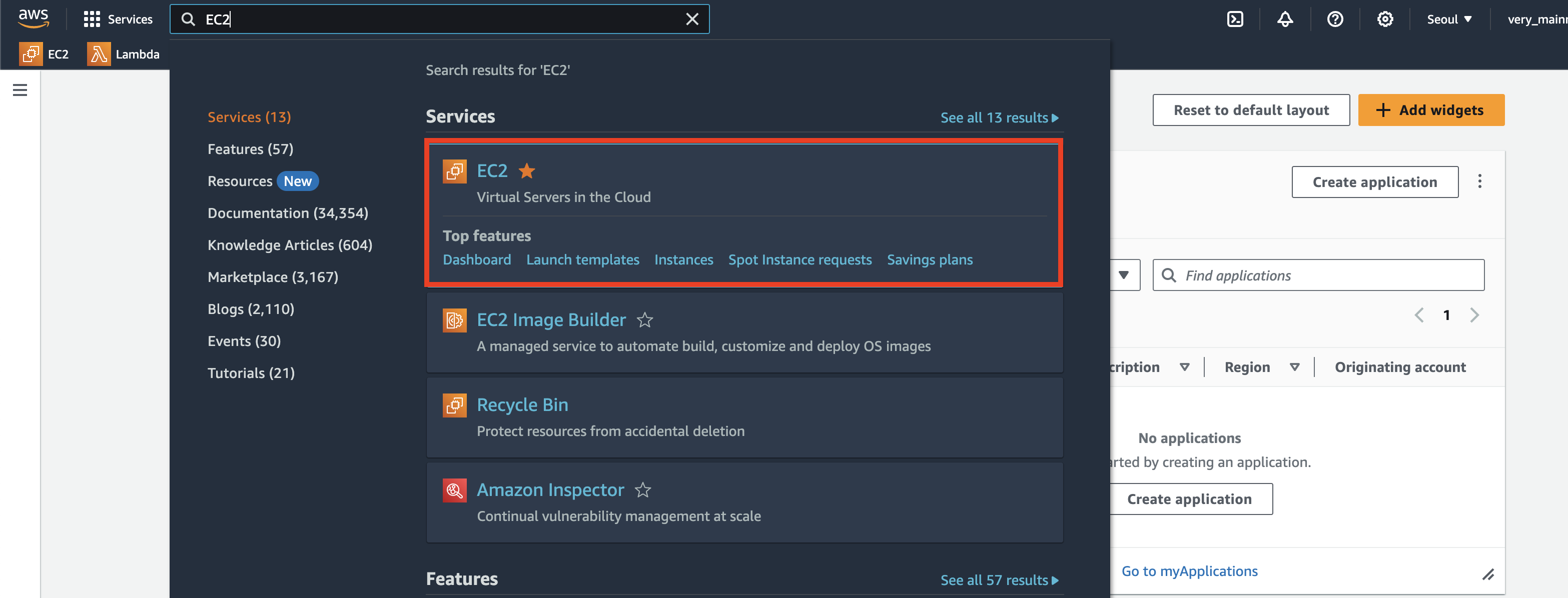 1. AWS로그인 → 검색창에 EC2검색