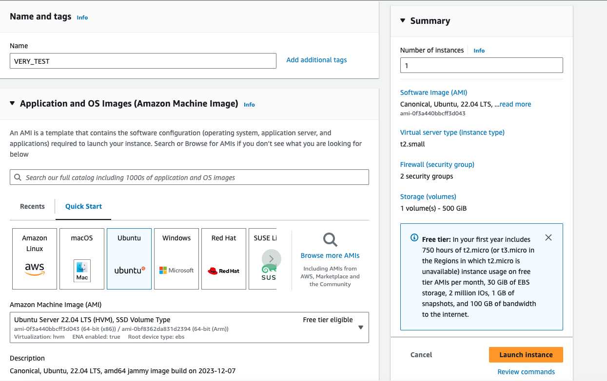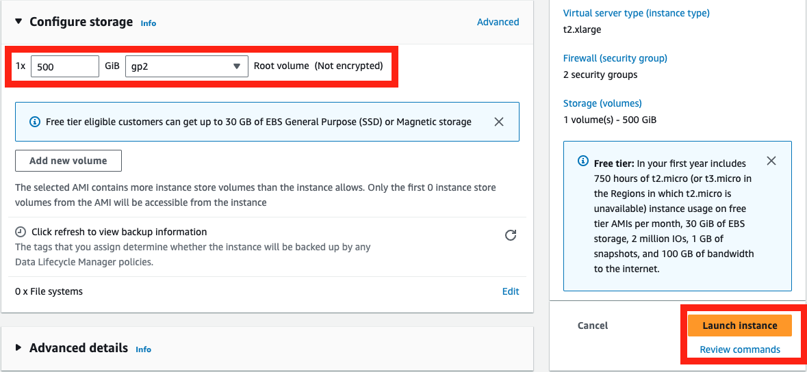 2. Click Launch Instatnce after setting 500GB