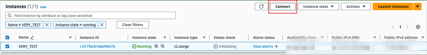 * For the blurred part, enter the value of the Public IPv4 address.