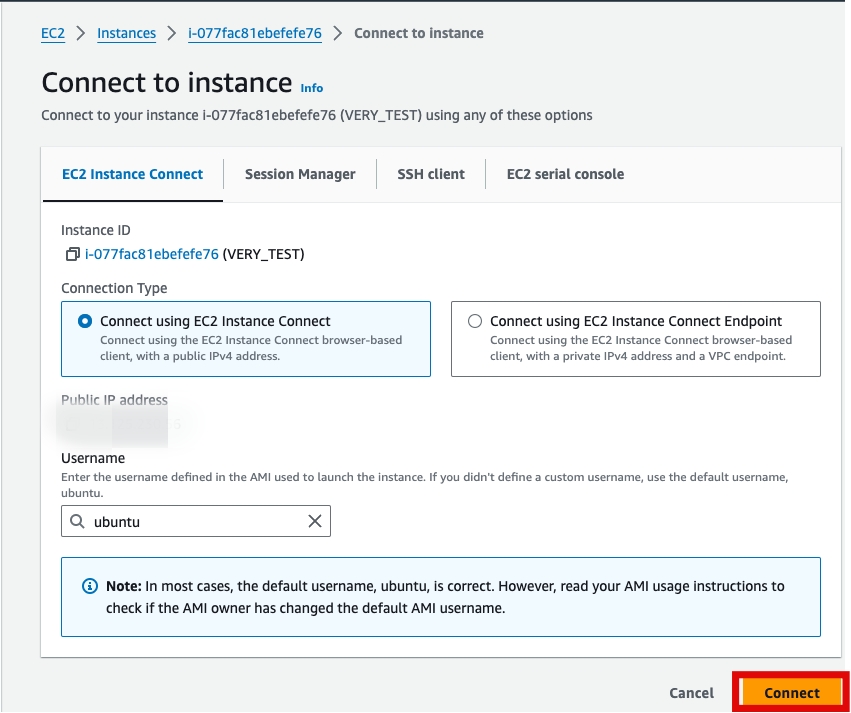 For the blurred part, enter the value of the Public IPv4 address.